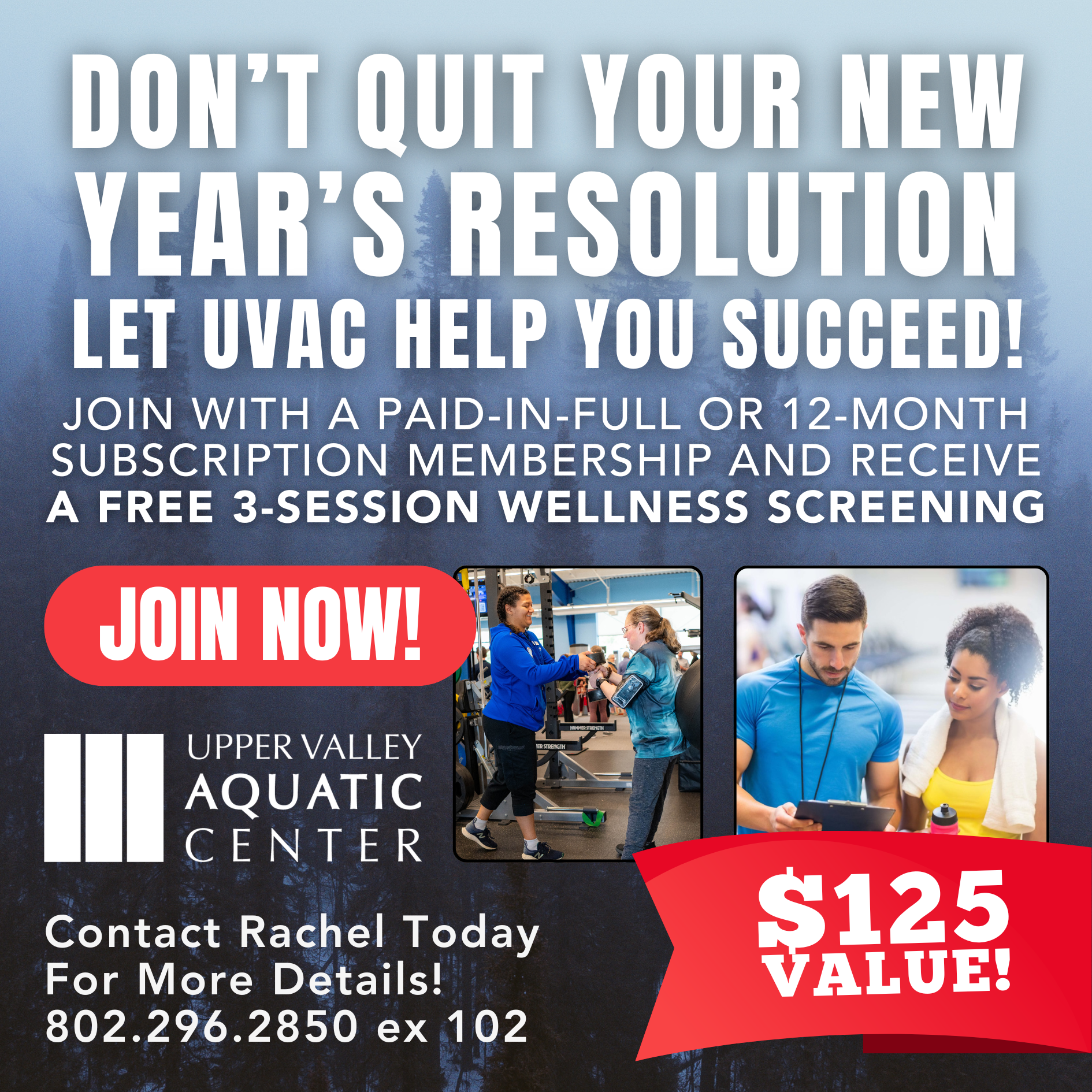 Contact Rachel Courchaine, UVAC Membership Liaison today at 802-296-2850 ext. 102 or rcourchaine@uvacswim.org for more details.